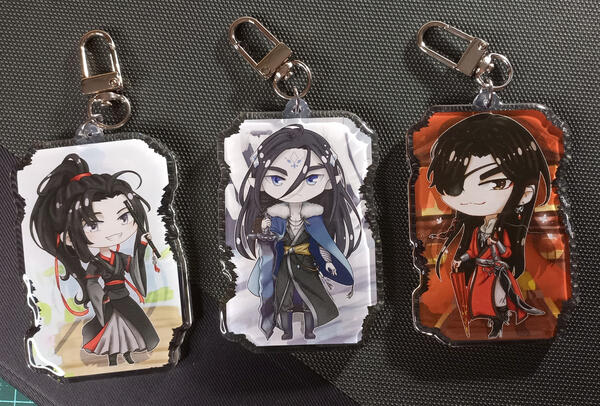 This style is best suited for acrylic charms and similar products.Character art with simple shading, with a choice of no background, simple elements, or rough environment.Minor stylistic choices may change over time, although key elements will remain constant throughout all pieces. All stylistic aspects will remain constant for a set of characters.